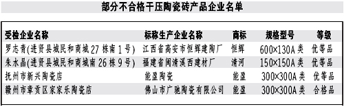 本報(bào)訊記者龔漢斌報(bào)道:近日,江西省質(zhì)監(jiān)局公布了近期對(duì)干壓陶瓷磚產(chǎn)品進(jìn)行省級(jí)產(chǎn)品質(zhì)量監(jiān)督抽查的結(jié)果。質(zhì)監(jiān)部門(mén)共抽查了51家生產(chǎn)企業(yè)生產(chǎn)的52批次產(chǎn)品,抽樣合格率90.4%。抽查結(jié)果表明,本次抽查的陶瓷磚其放射性核素限量指標(biāo)均達(dá)到了標(biāo)準(zhǔn)規(guī)定的要求;但仍有部分產(chǎn)品存在一些問(wèn)題。 本次抽查的5批次不合格產(chǎn)品中,有1批次產(chǎn)品的破壞強(qiáng)度達(dá)不到標(biāo)準(zhǔn)規(guī)定要求,兩批次產(chǎn)品的斷裂模數(shù)指標(biāo)達(dá)不到標(biāo)準(zhǔn)規(guī)定要求。強(qiáng)度性能指標(biāo)不達(dá)標(biāo)易造成產(chǎn)品達(dá)不到應(yīng)有的承重能力,在使用中產(chǎn)生開(kāi)裂、破碎或表面缺陷等現(xiàn)象,影響產(chǎn)品的使用壽命和使用性能。有4批次產(chǎn)品的吸水率達(dá)不到標(biāo)準(zhǔn)規(guī)定要求。吸水率不達(dá)標(biāo),將影響消費(fèi)者的正常使用。 對(duì)本次監(jiān)督抽查不合格的產(chǎn)品,省質(zhì)監(jiān)局將依法嚴(yán)肅處理。